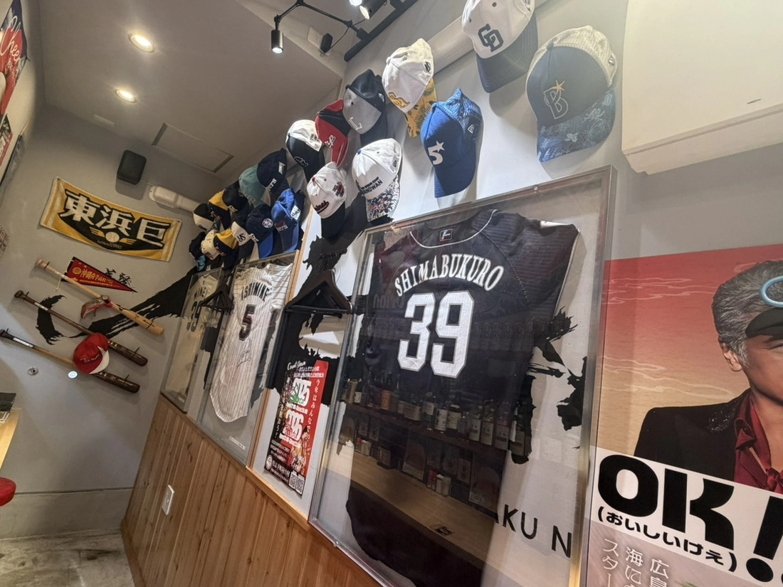 店内には沖縄県出身のプロ野球選手をはじめ、多くの球団グッズが飾られています。 その中には選手が実際に使用のバットやユニフォーム・手袋が並んでおり、 年間を通して幅広い年齢層の野球ファンにご来店いただいております。